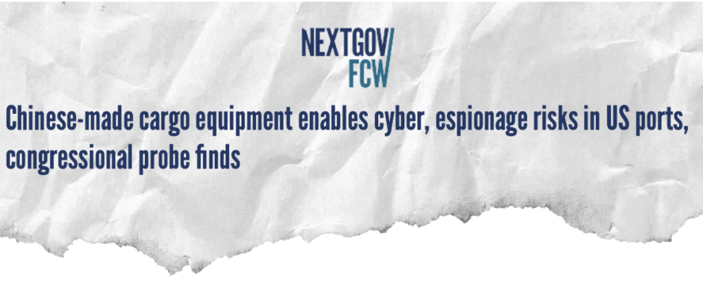 “Chinese-made cranes in U.S. ports could pose a serious threat to national security due to cyber vulnerabilities that could allow them to be remotely hijacked — and port authorities are not postured to address these threats, a report out Thursday from two House committees found.